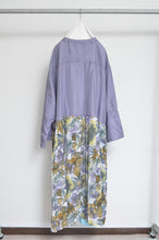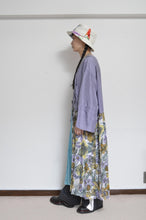 A long robe made with a new front made from used shirt fabric and combined with two types of used pleated skirts.