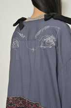 凹凸のある生地感なので、肌さわりがサラッとしています。 背中にはMEGUMU YAMAMOTO描き下ろしの目のモチーフが刺繍されています。