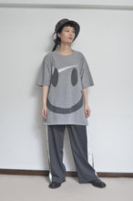 A smiley face is cut out on the front of the used T, and a round cordura cotton sheeting patch is applied from the back.