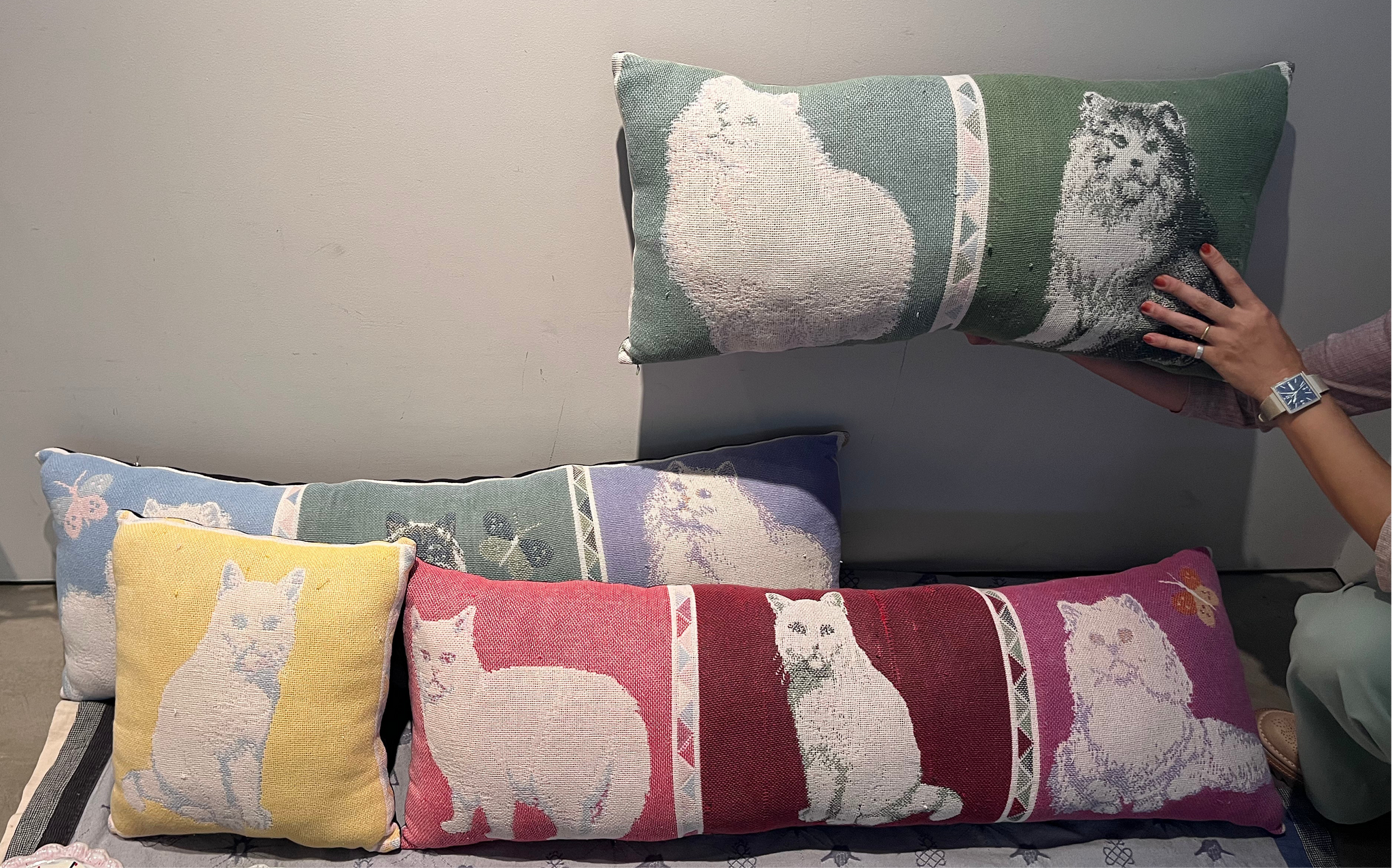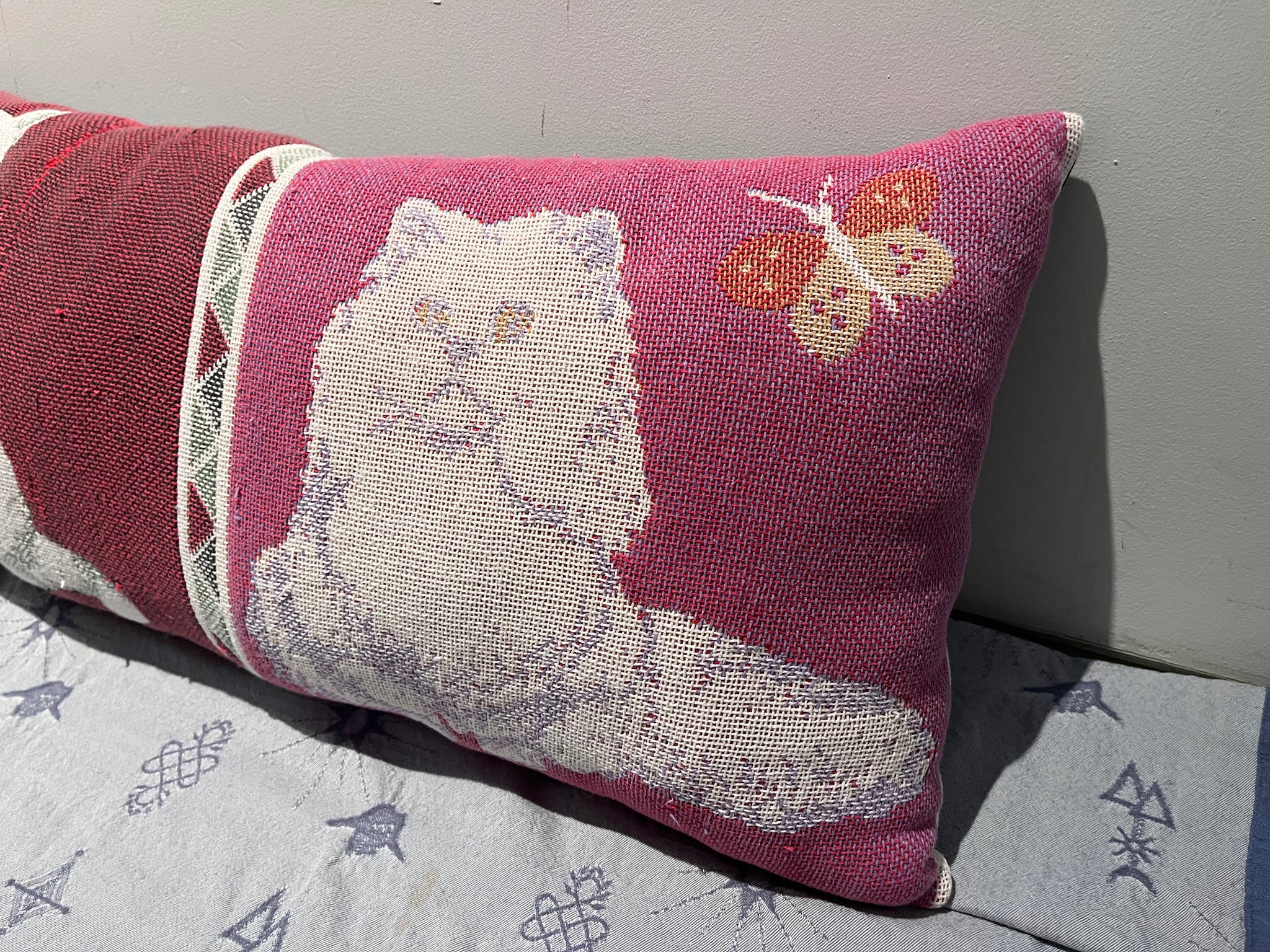 アンティークのラグ(新古品)をモチーフに合わせて切抜き、クッションをつくりました。