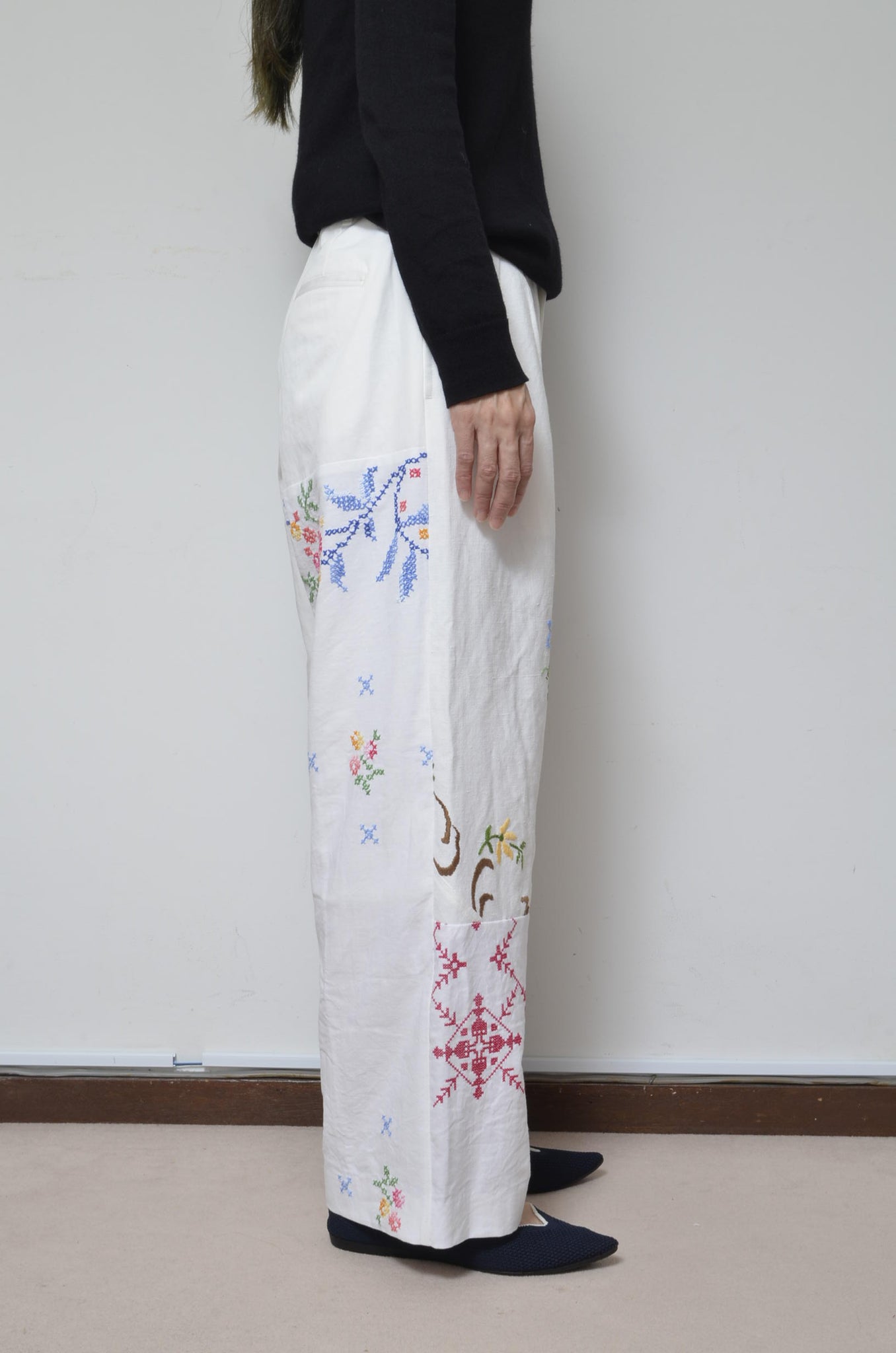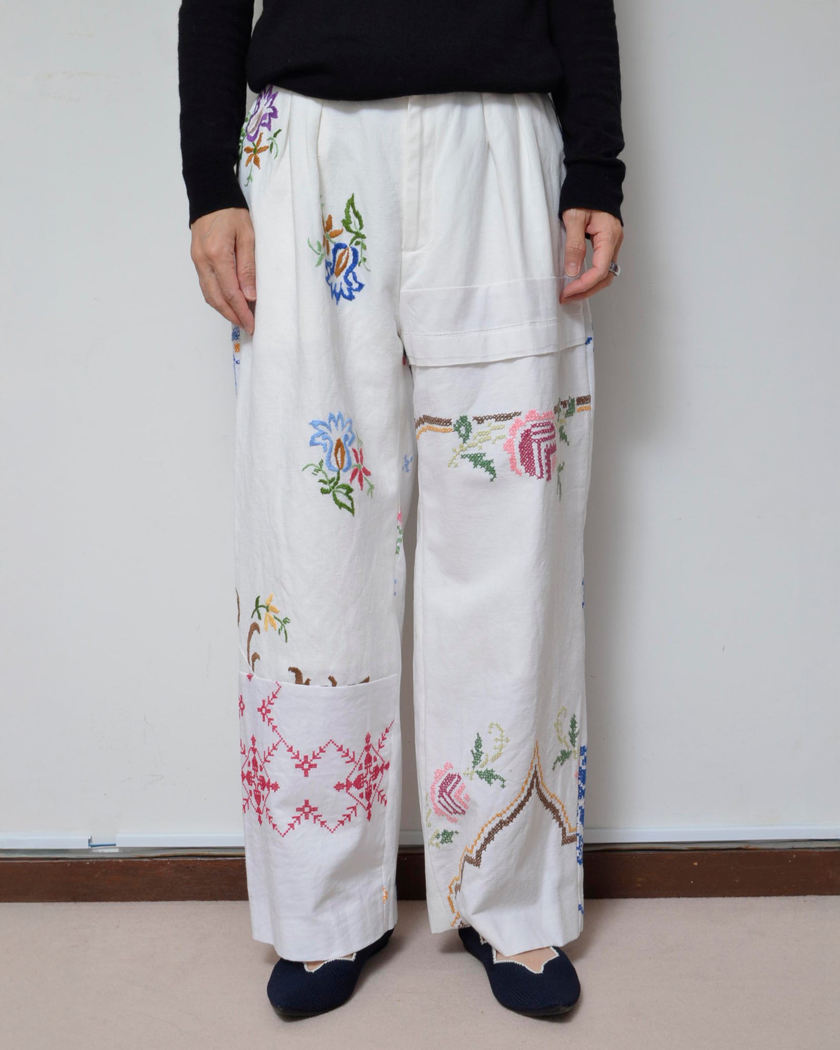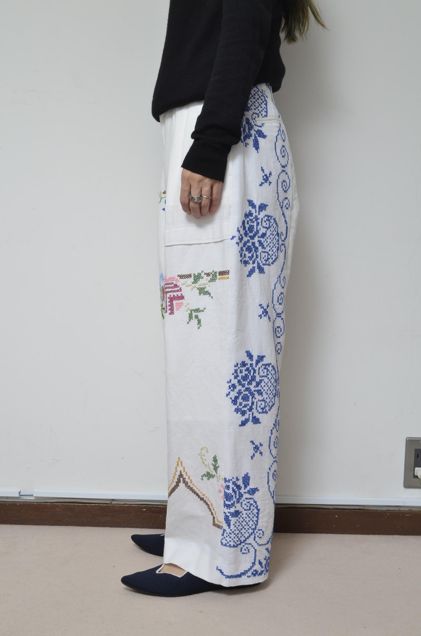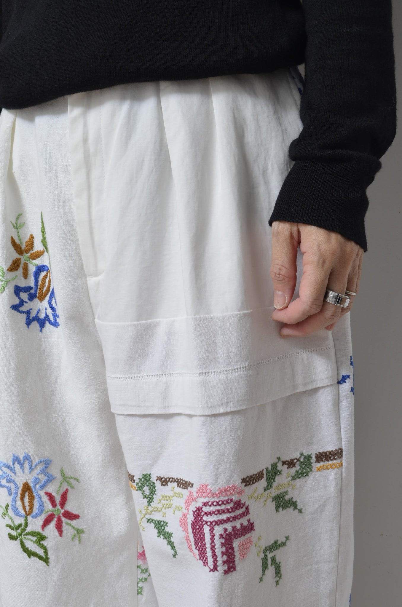 YEAH RIGHT!!定番品番のusedユーロテーブルクロスを使用したワイドストレートシルエット。