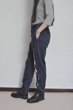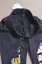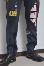 コットン/ナイロンのしっかりしたコーデュラ裏毛とusedスウェットで切り替えたパンツ。