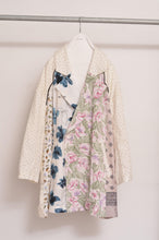 前身頃にused花柄スカート、usedスカーフをオリジナルパターンに合わせて裁断し配置。