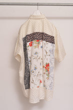 後ろ身頃にused花柄スカート、usedスカーフをオリジナルパターンに合わせてフレーム状に配置しました。