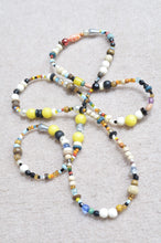 usedネックレスやバングルなどのアクセサリーをバラバラにしたビーズパーツをランダムに並べて制作したネックレス付き。