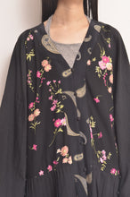 ディティールも見応えありで、前たてにusedスカーフを使用し、共布くるみドームボタン+ループで前開きを作っています。袖下にスリットが入り同じく共布くるみドームボタン+ループで閉めてもよし、開けてもよしです。