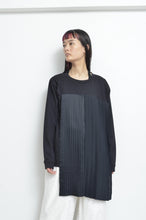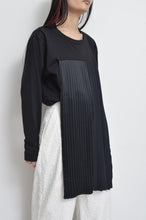 オリジナルボディーのL/S Tシャツの前身頃にusedプリーツSKをザバッと配したトップス。