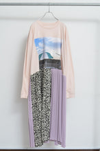 フォトグラファー東海林広太の今シーズンのイメージに合わせてセレクトされた「PARASOL」をインクジェットプリントしたオリジナルボディーのTシャツにusedプリーツSKをあわせたワンピース。