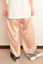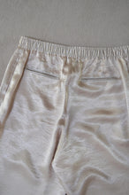 適度な光沢とシワ感がいい雰囲気のアセテートサテンで仕立てたイージーワイドパンツ。