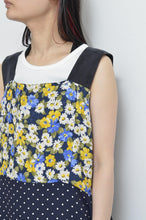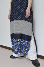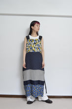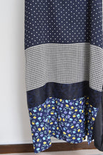 横段でusedフローラルOPやペイズリースカーフなど様々なアイテムを解体し切り替えたワンピース。