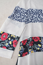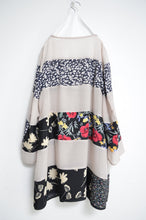 キュプラ/コットン素材の透け感があり柔らかな風合いながら、しっかりしたシフォン生地とused花柄スカートをボーダー状に切り替えた存在感のあるワンピース。