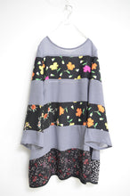 キュプラ/コットン素材の透け感があり柔らかな風合いながら、しっかりしたシフォン生地とused花柄スカートをボーダー状に切り替えた存在感のあるワンピース。