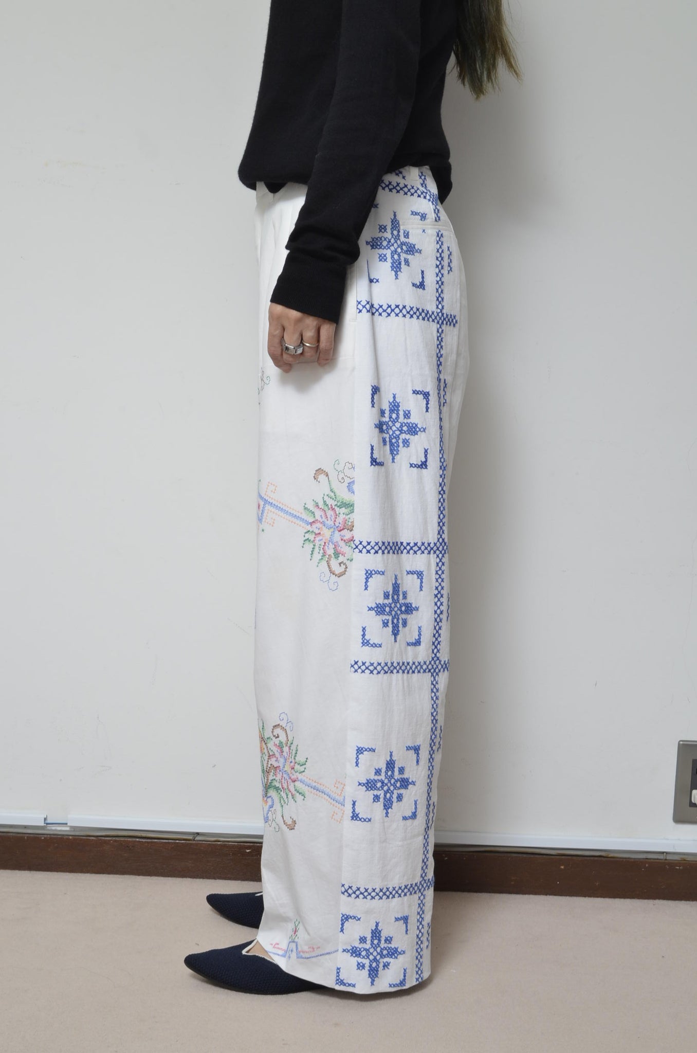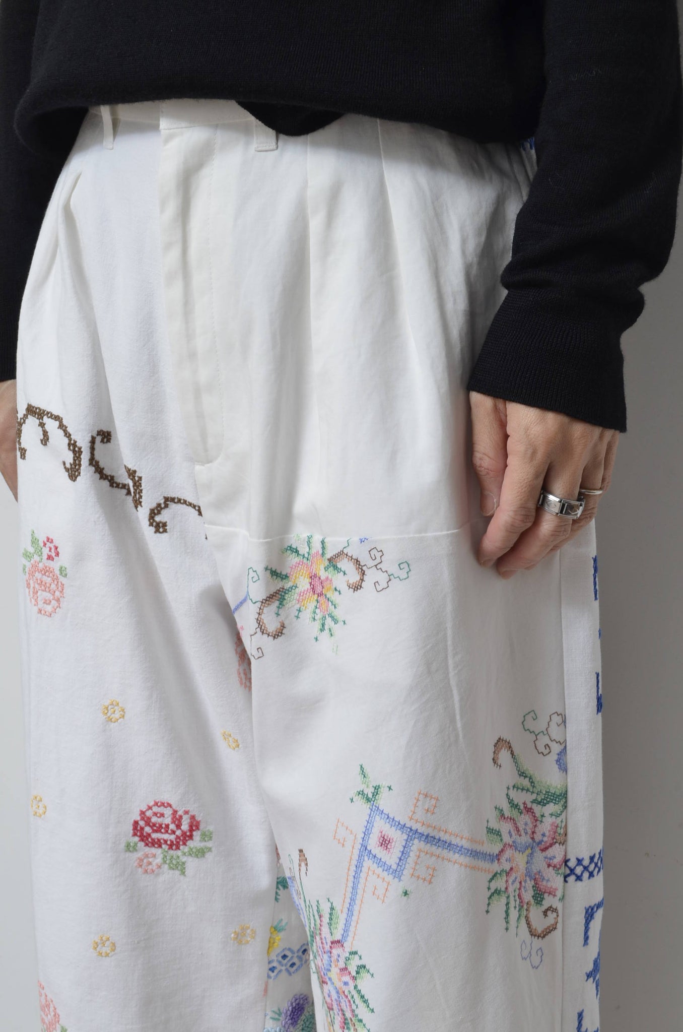 YEAH RIGHT!!定番品番のusedユーロテーブルクロスを使用したワイドストレートシルエット。
