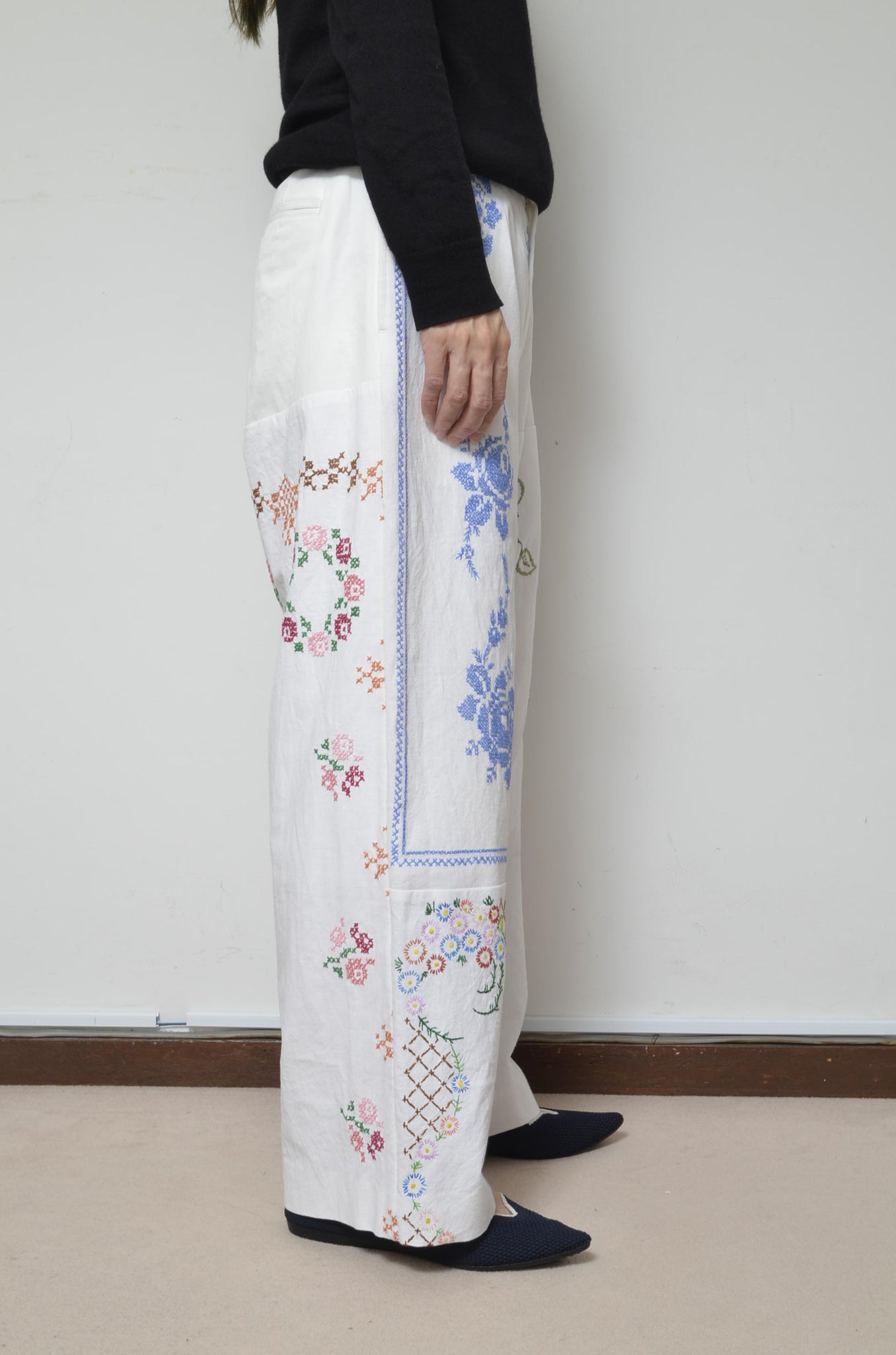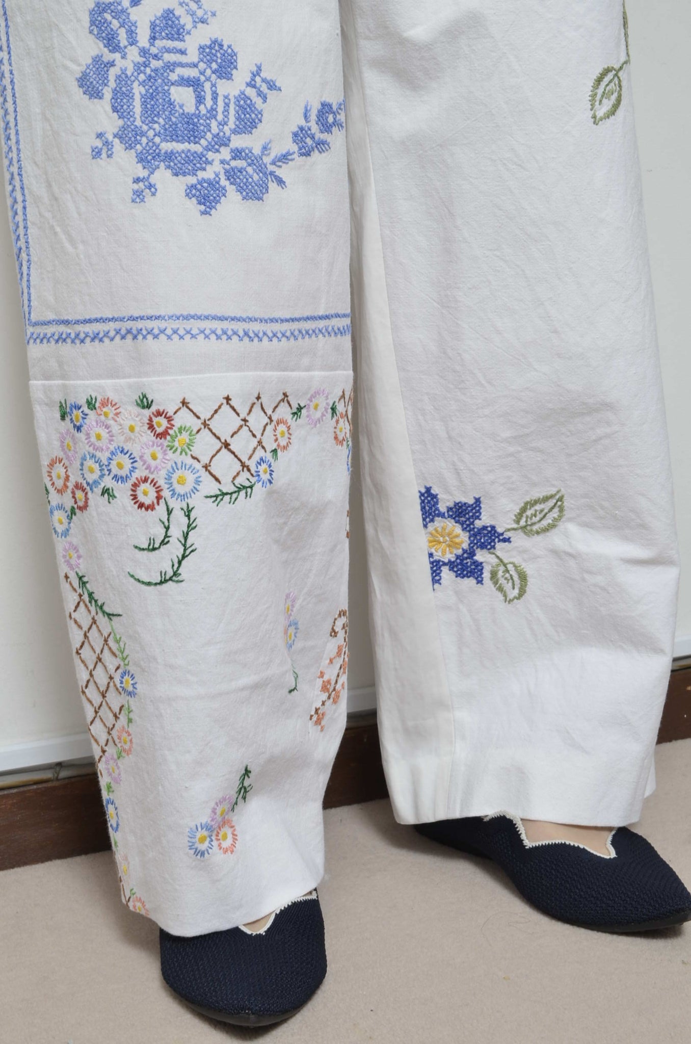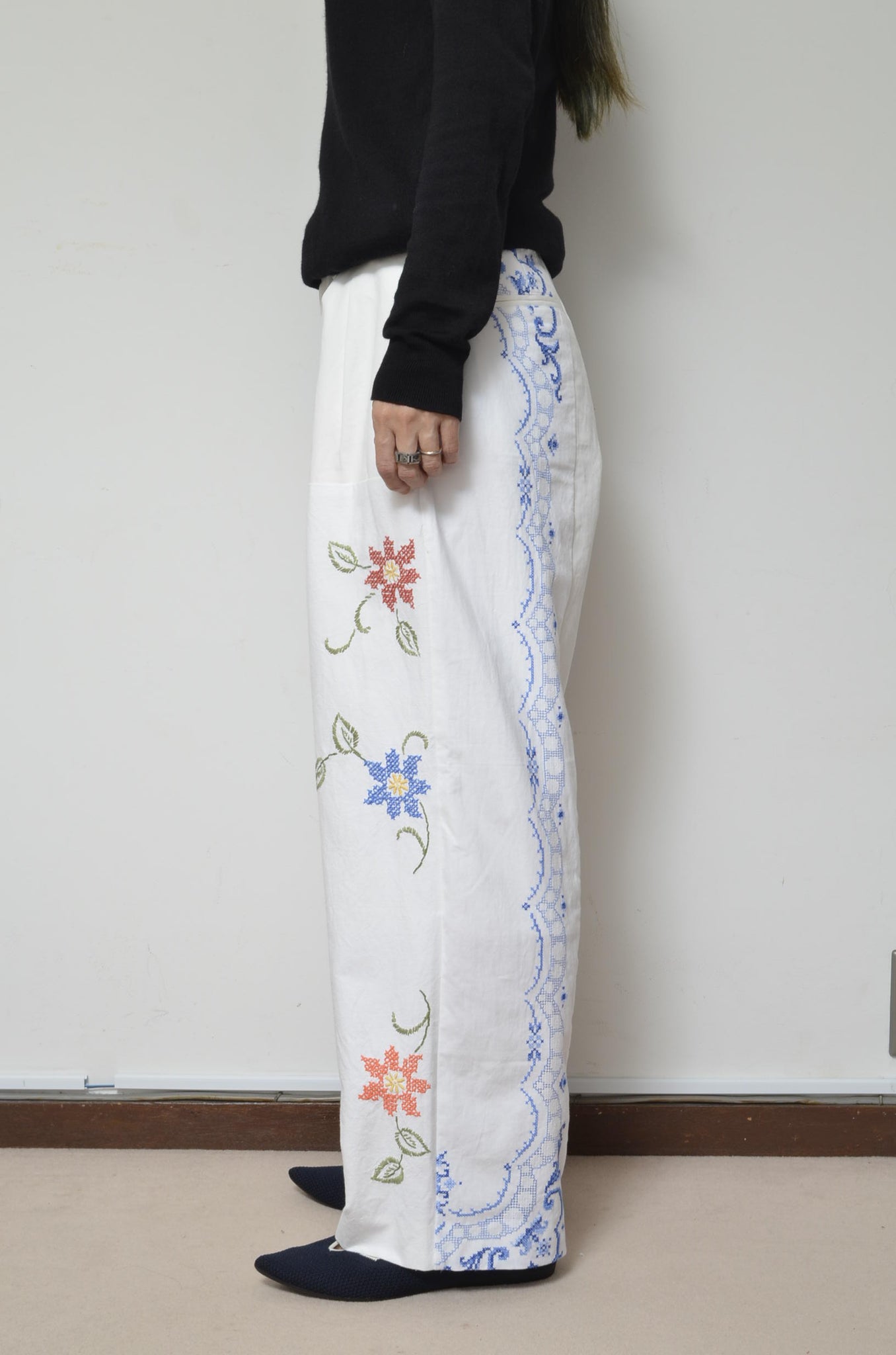 YEAH RIGHT!!定番品番のusedユーロテーブルクロスを使用したワイドストレートシルエット。