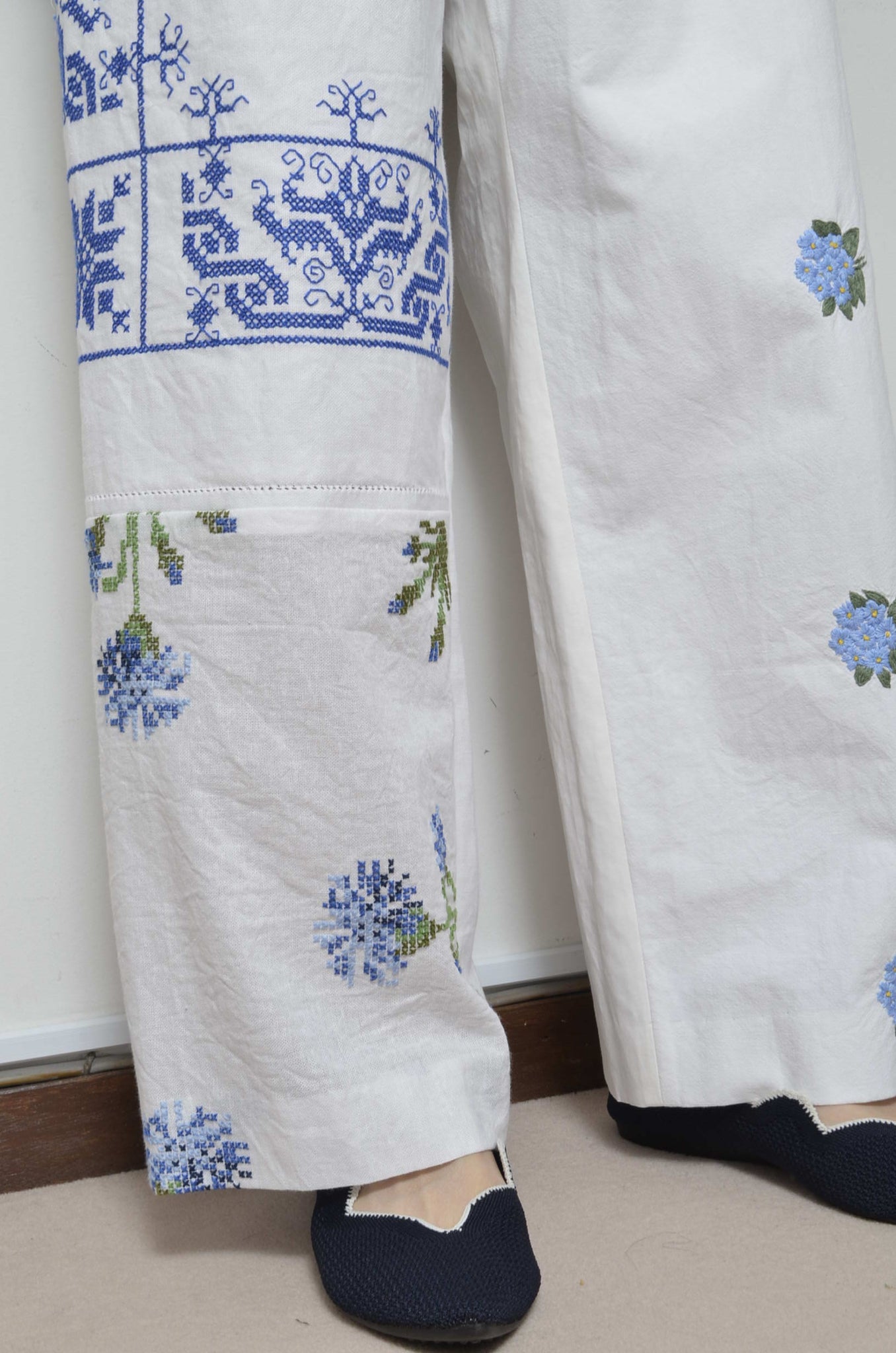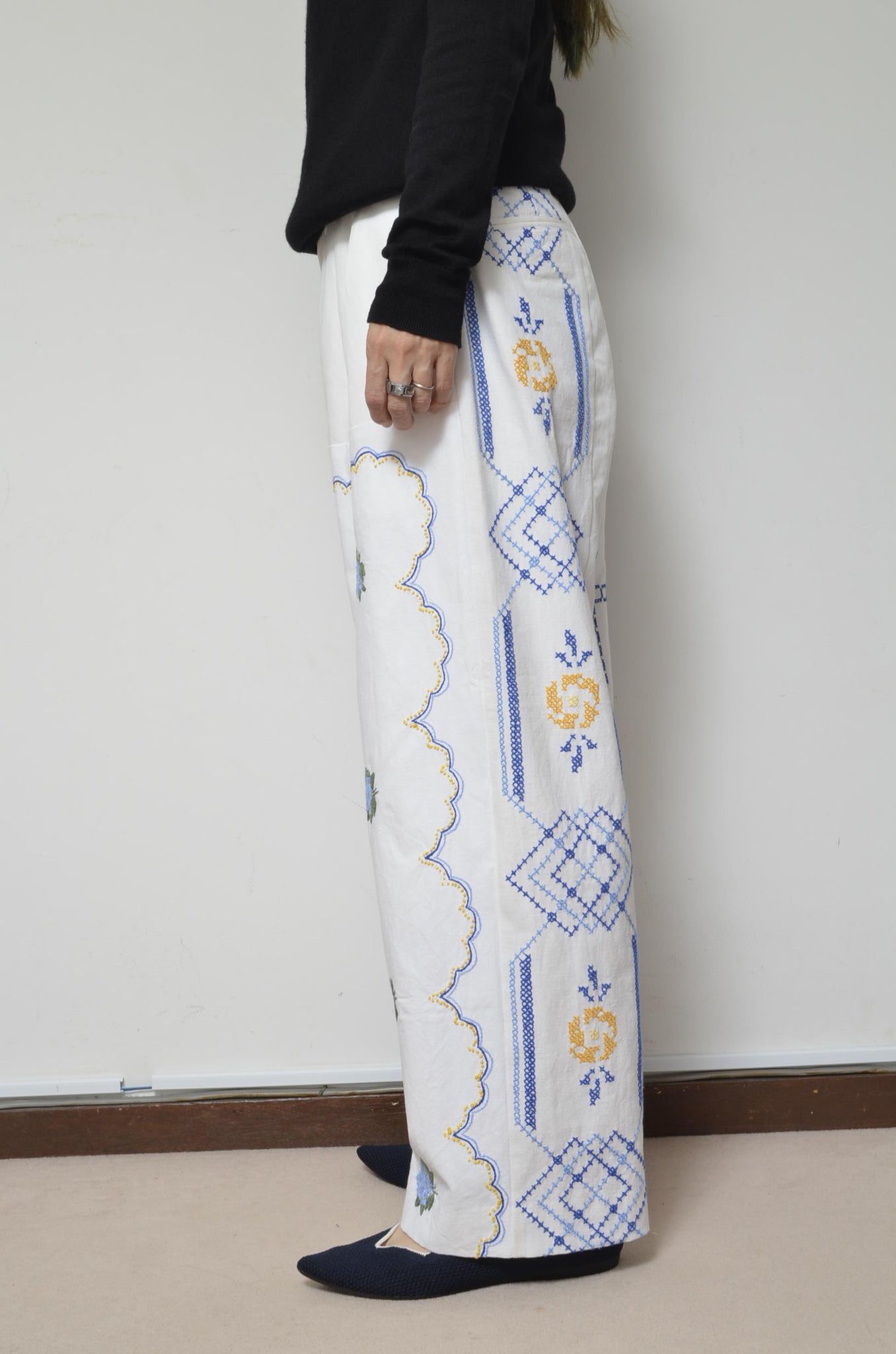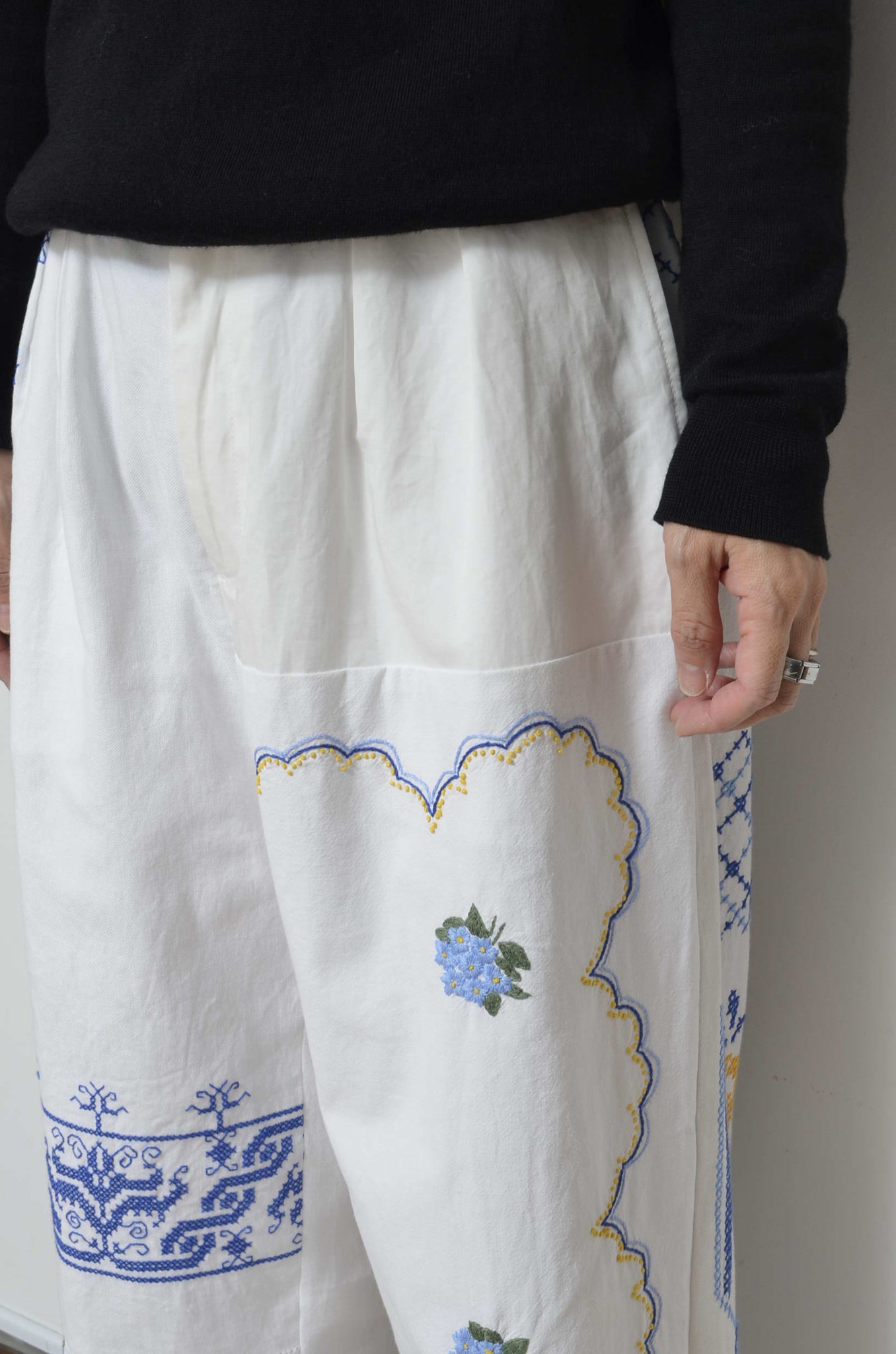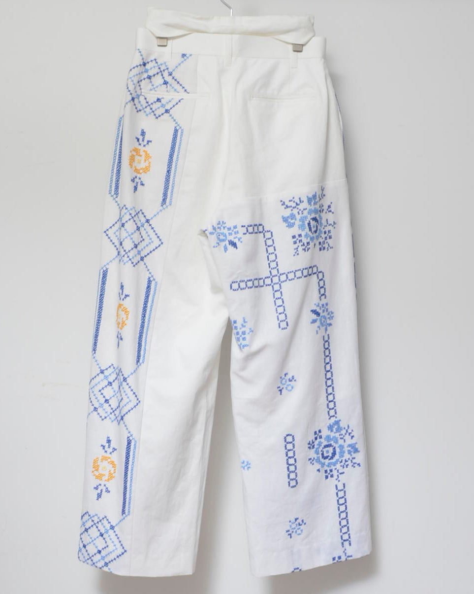 YEAH RIGHT!!定番品番のusedユーロテーブルクロスを使用したワイドストレートシルエット。