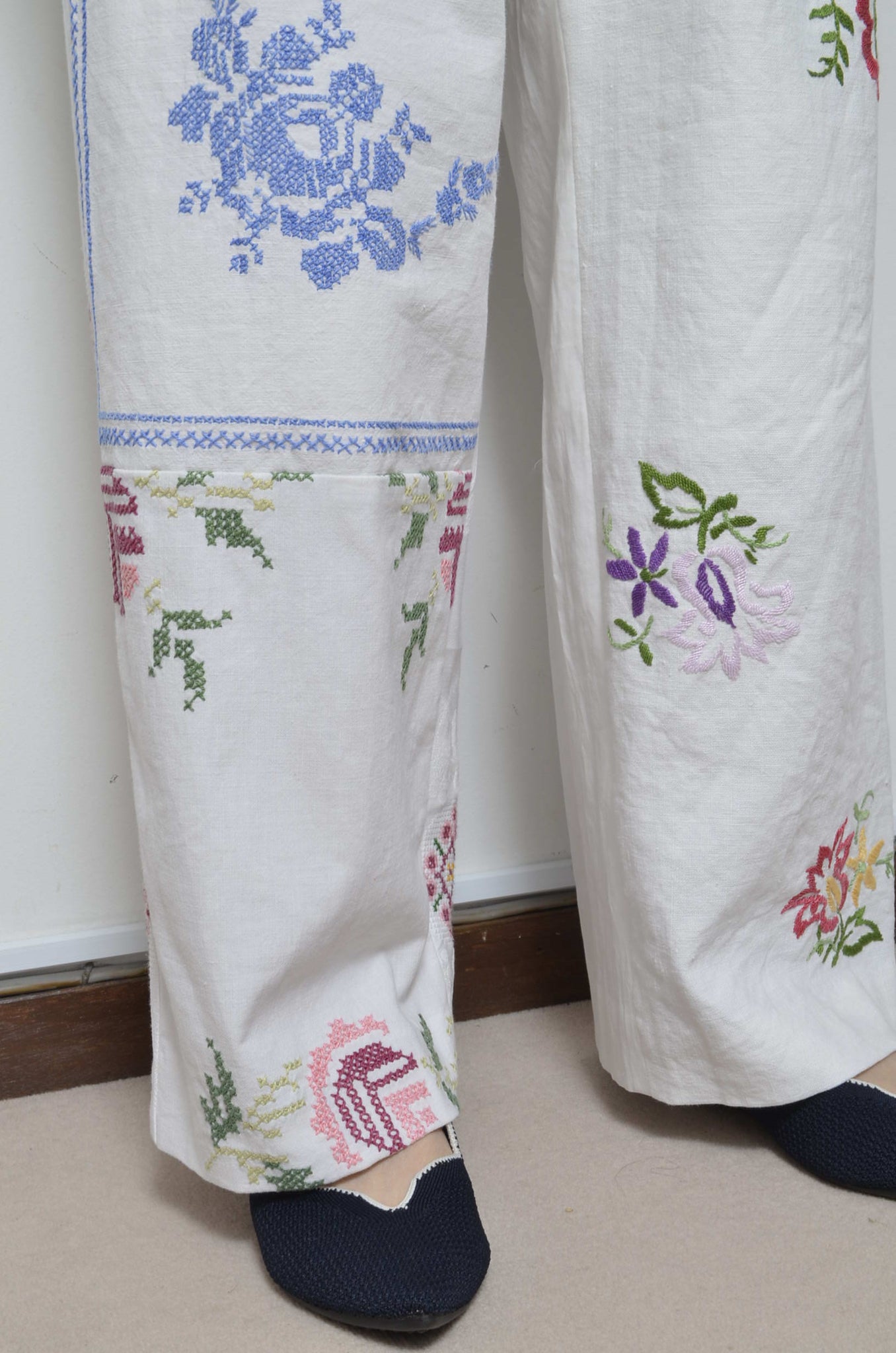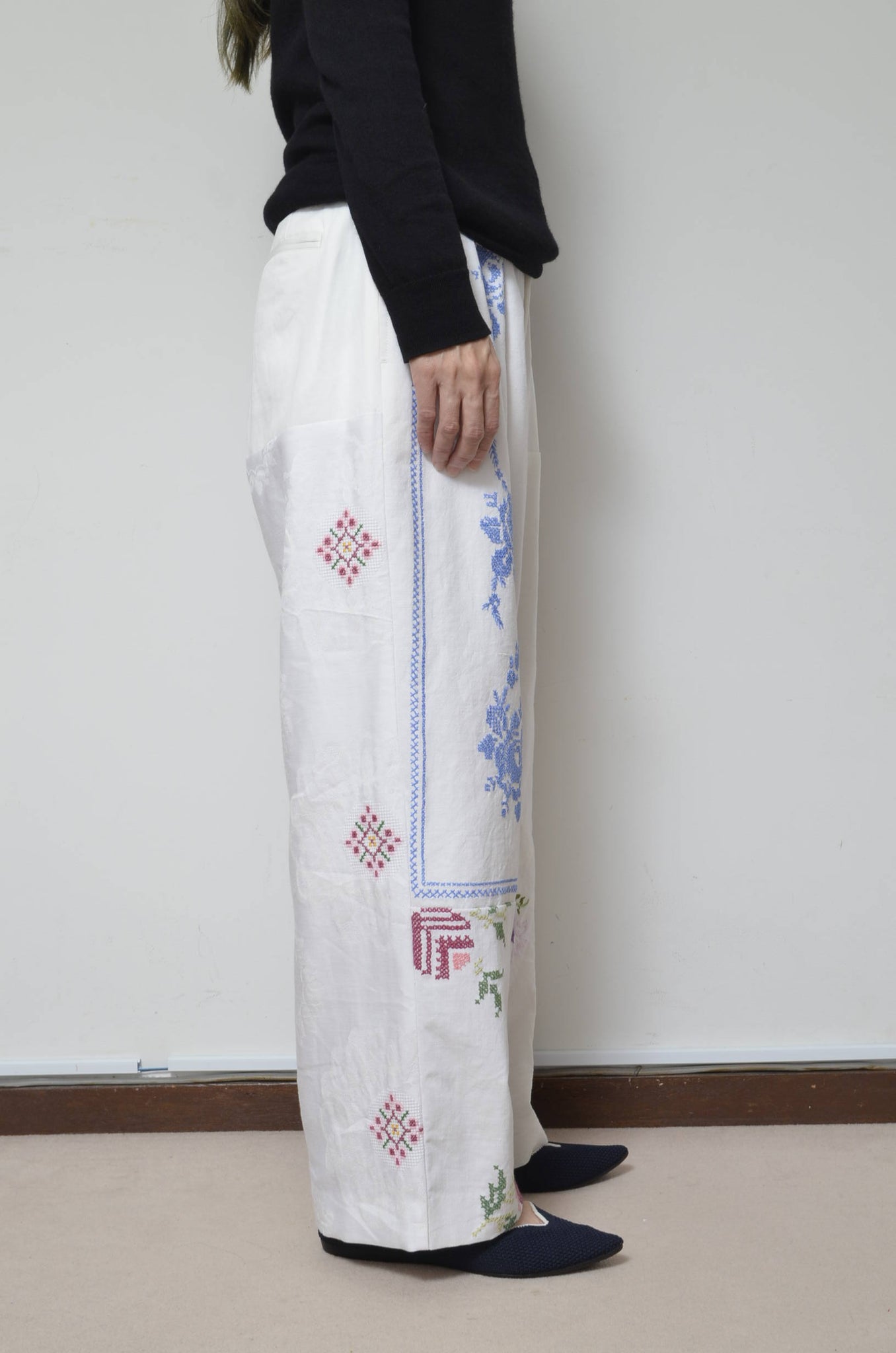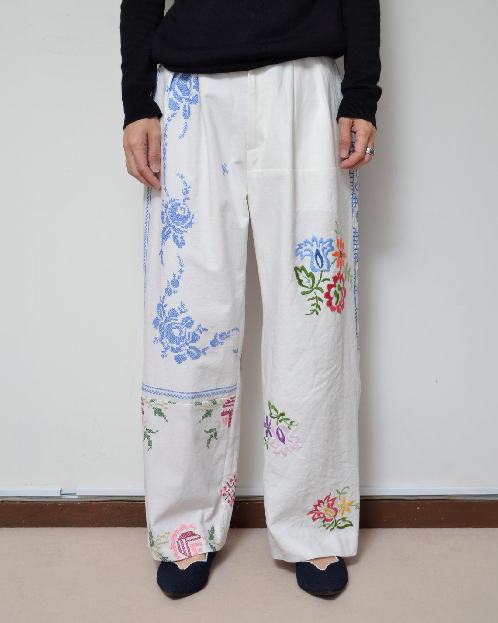 YEAH RIGHT!!定番品番のusedユーロテーブルクロスを使用したワイドストレートシルエット。