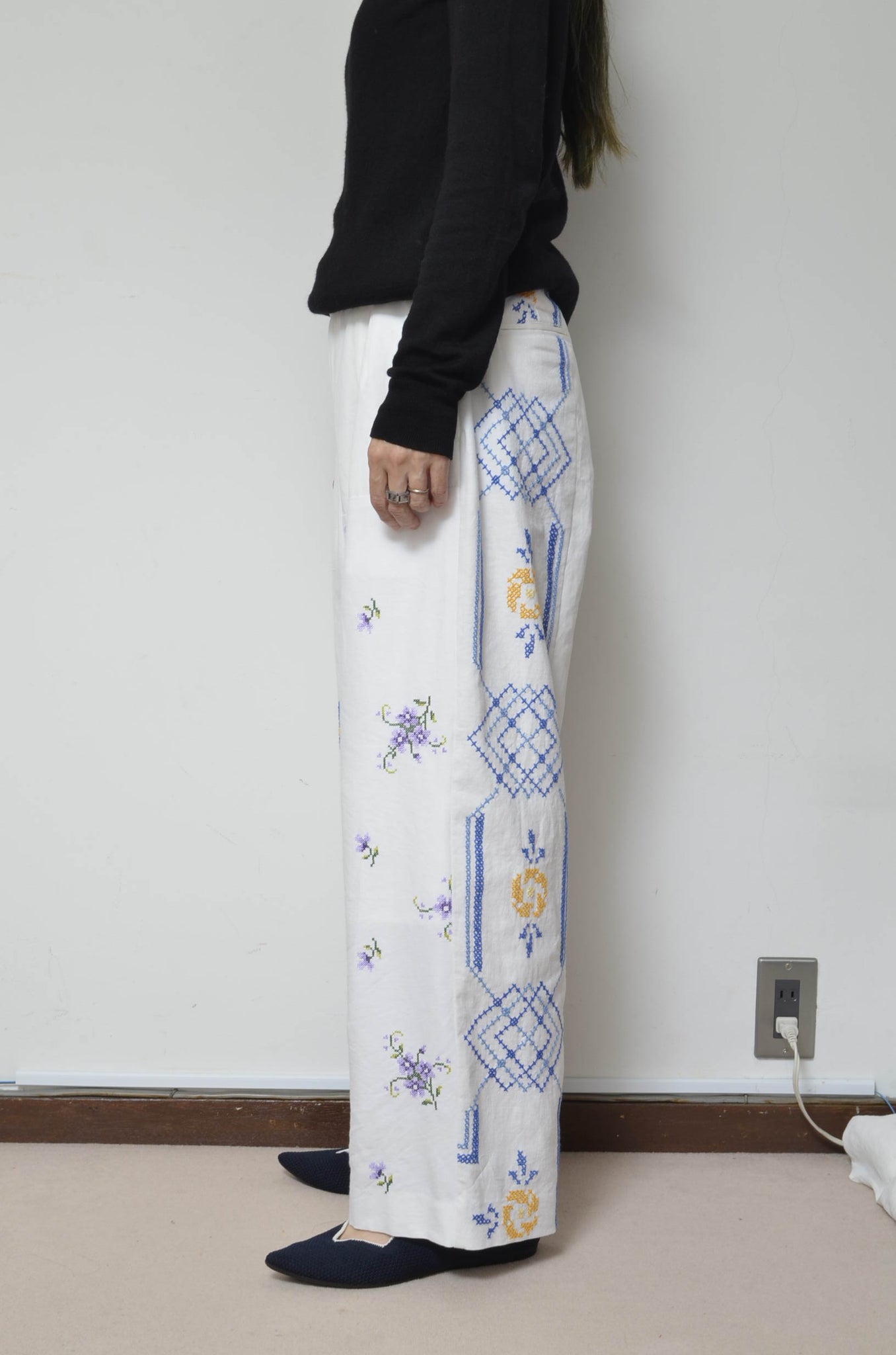 YEAH RIGHT!!定番品番のusedユーロテーブルクロスを使用したワイドストレートシルエット。