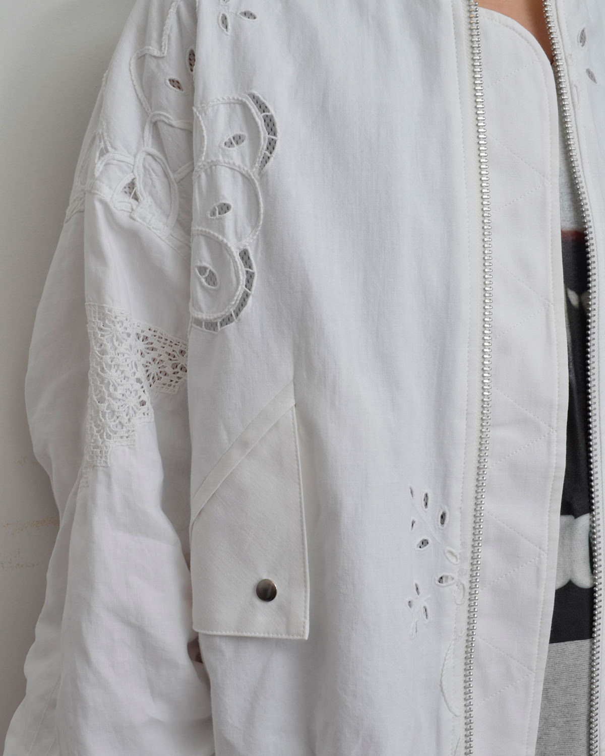 ヨーロッパ製のusedテーブルクロスを解体し、白いパーツのみで構成したMA-1。