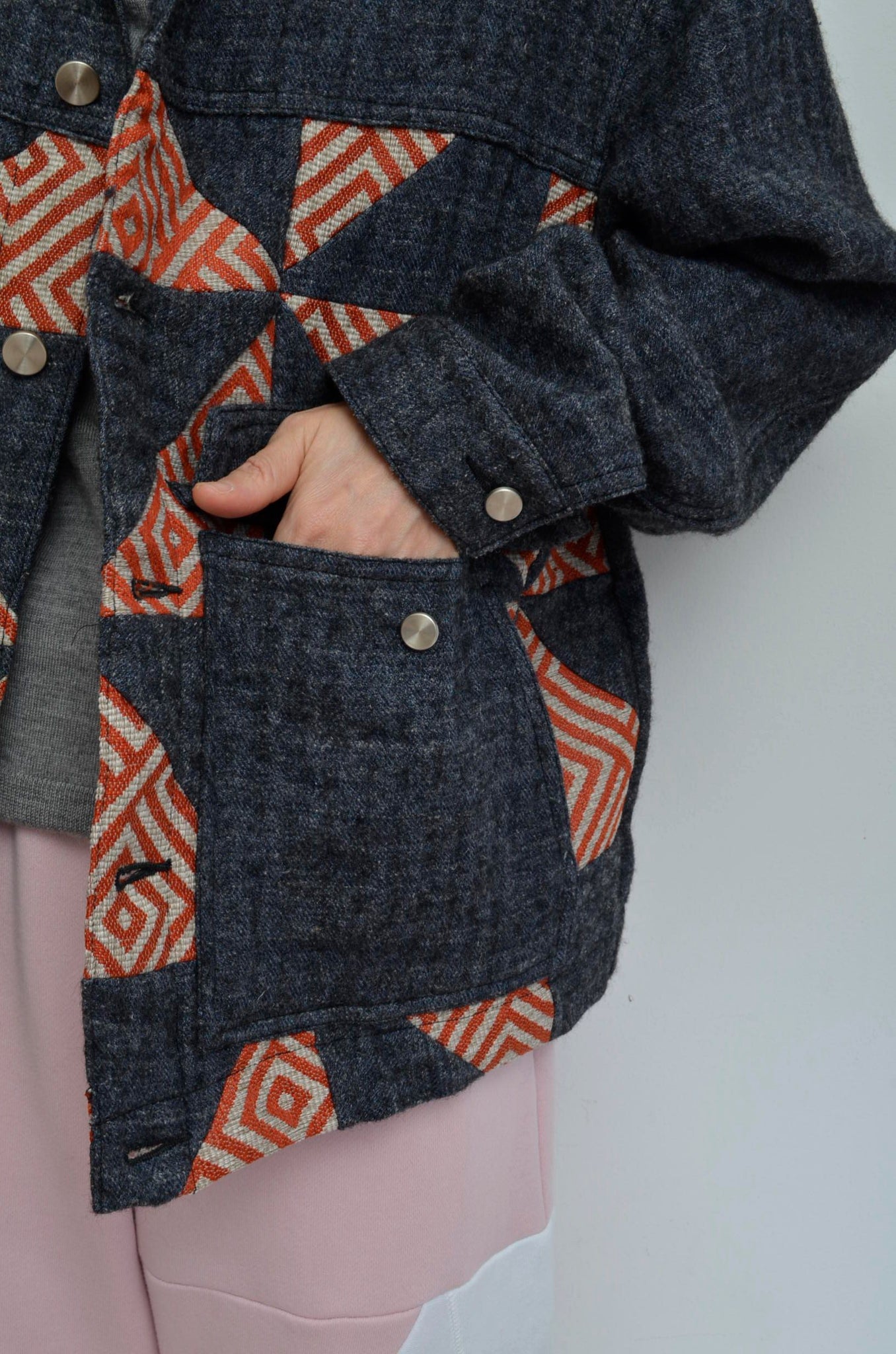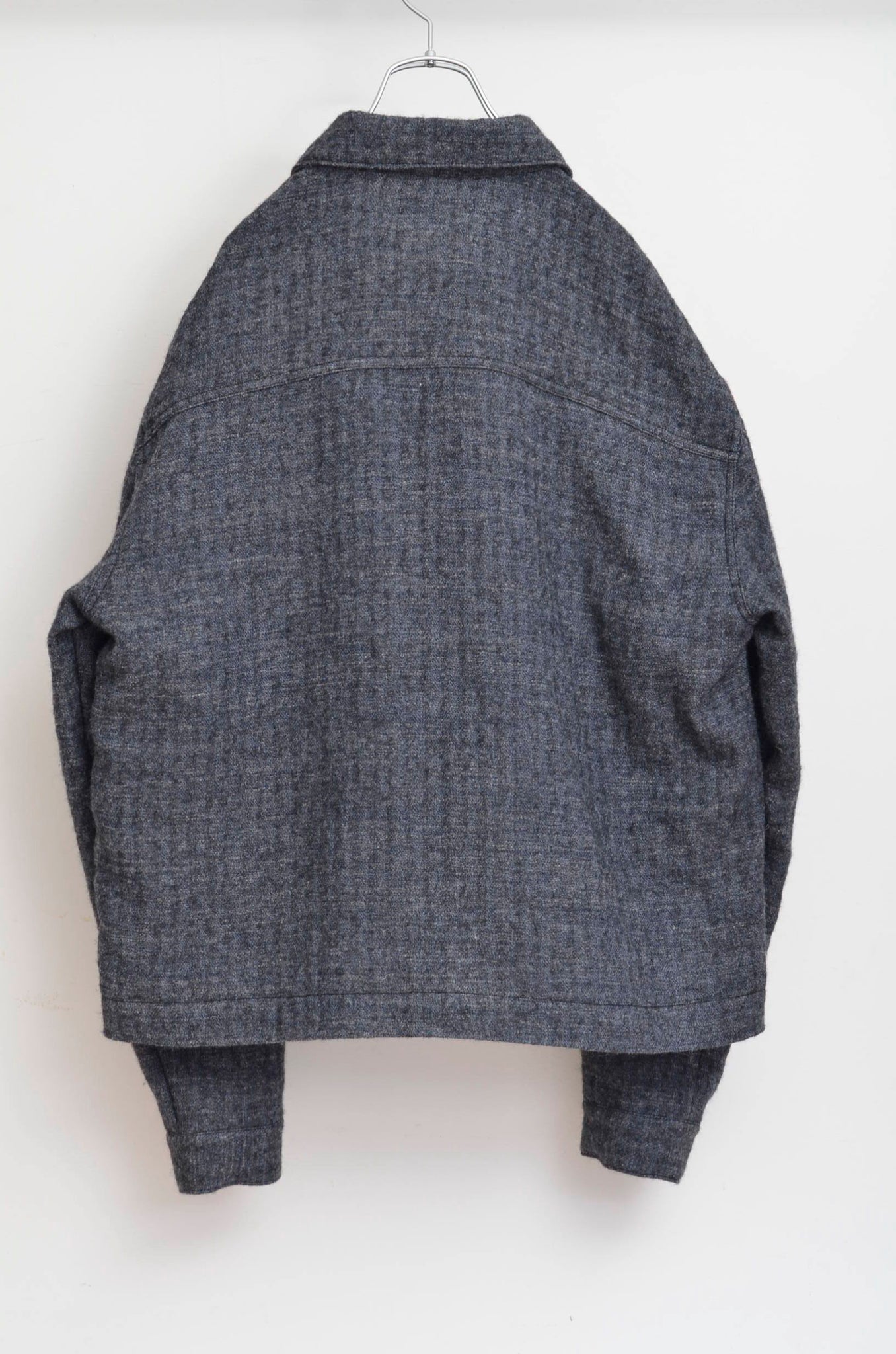 HERRINGBONE LINEN WOOL QUILTED WORK BLOUSON