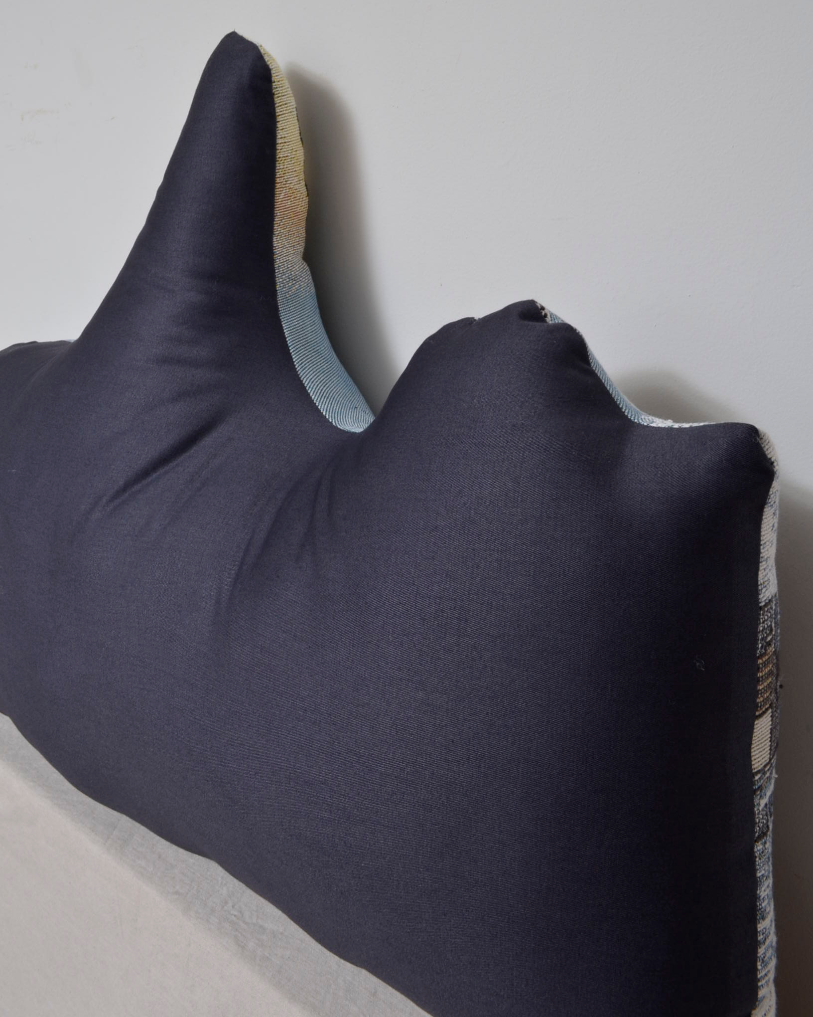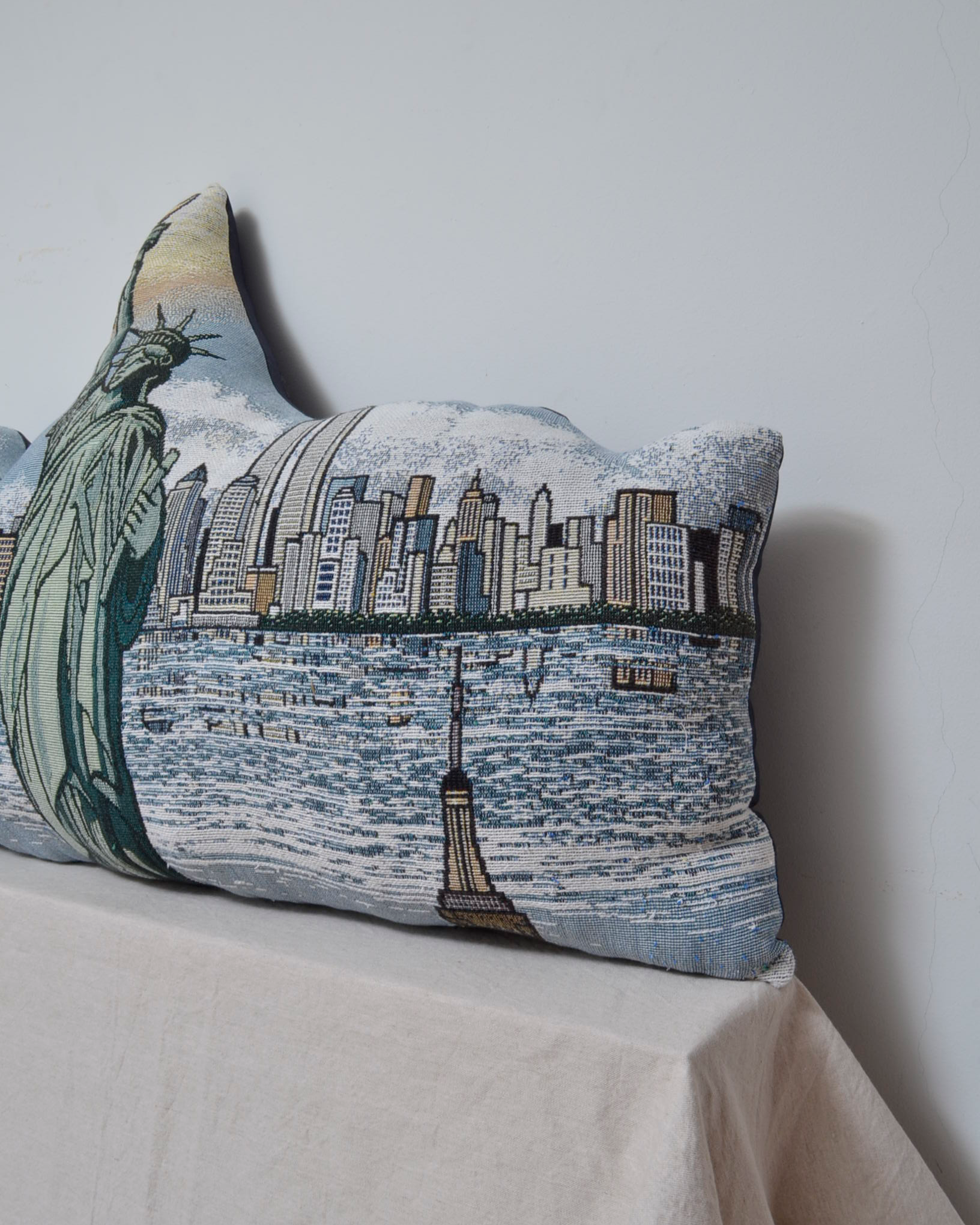ニューヨーク柄のアンティークのラグ(新古品)をモチーフに合わせて切抜き、クッションをつくりました。