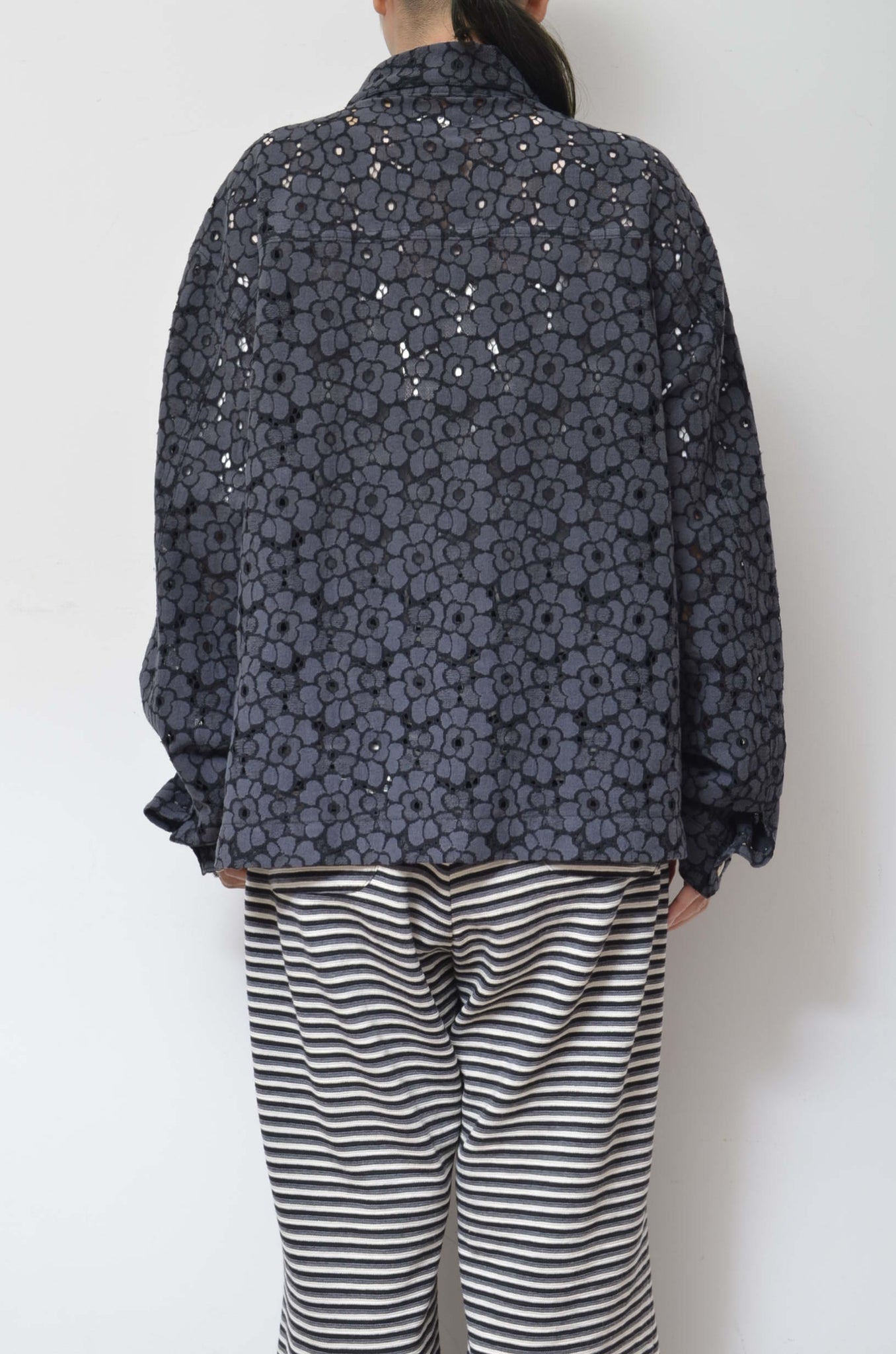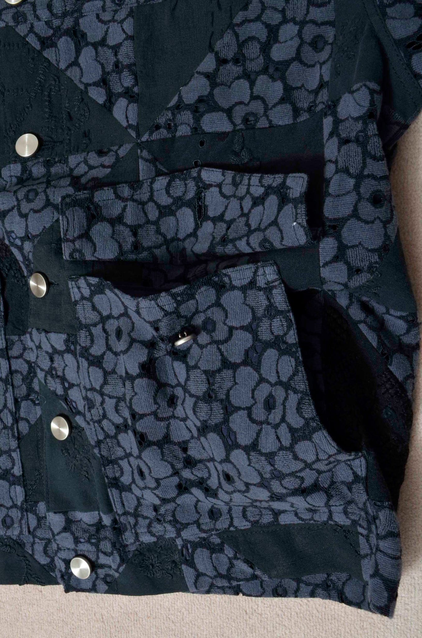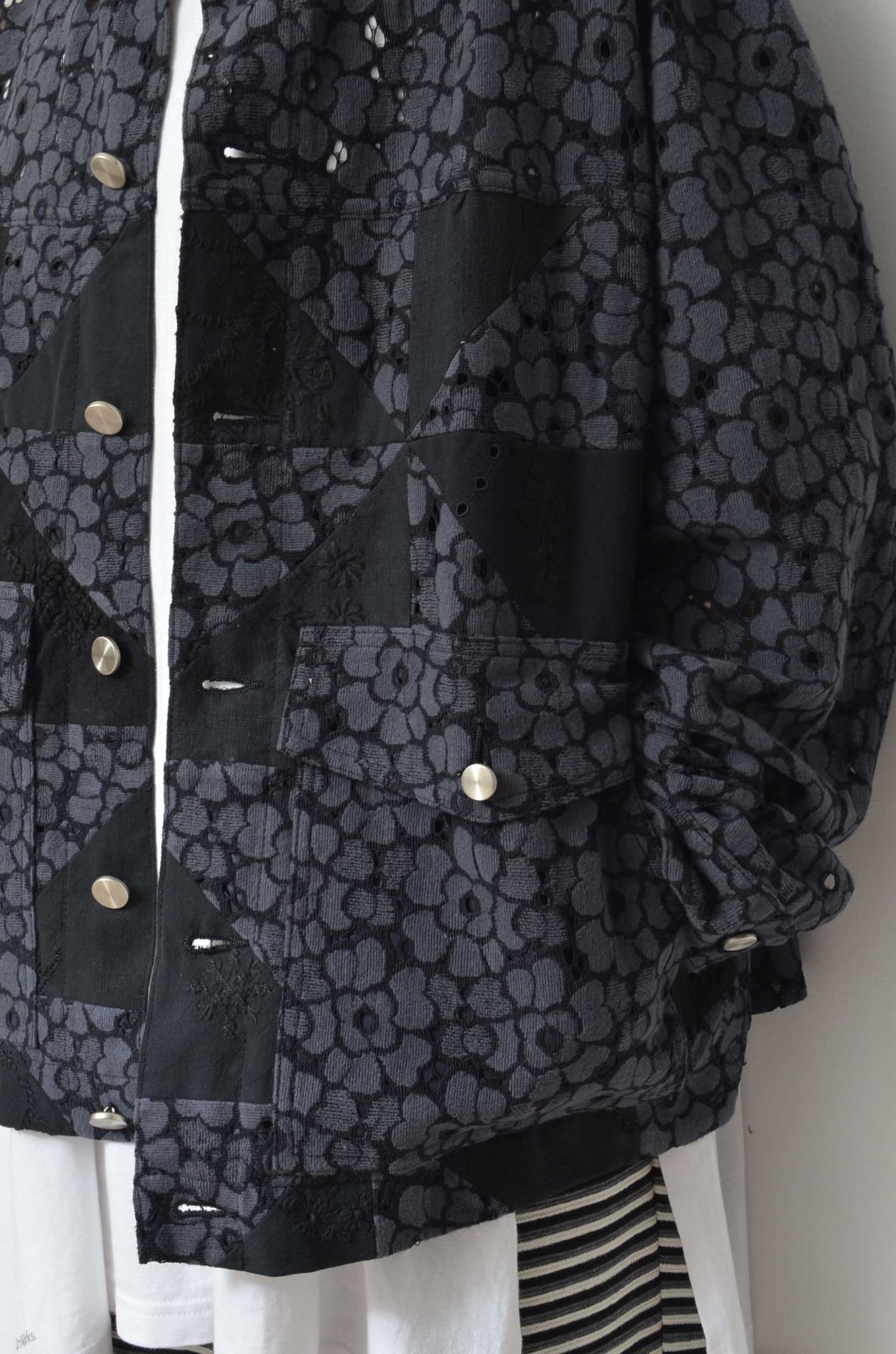 程よく厚みがありシックな風合いで織り上げられたデッドストックの花がらのレース生地で仕立てたワークブルゾン。