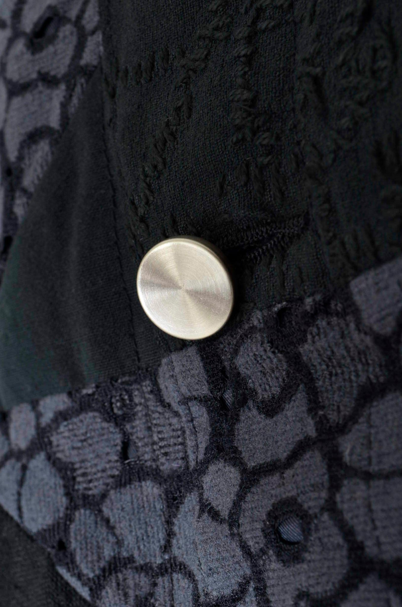前身頃には、材料で黒染めしたusedテーブルクロスと合わせたキルト切り替えを施しています。
