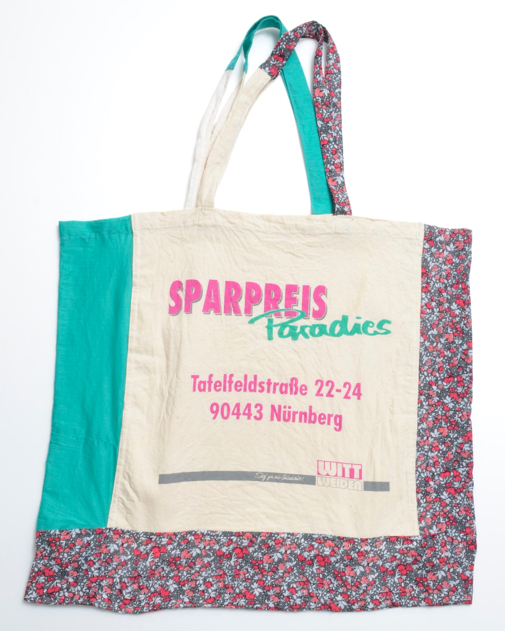 usedエコバッグを2枚使用し、組み合わせてできたメインの収納部分と、もともとエコバッグだった部分もそのまま収納としてご利用いただけます。