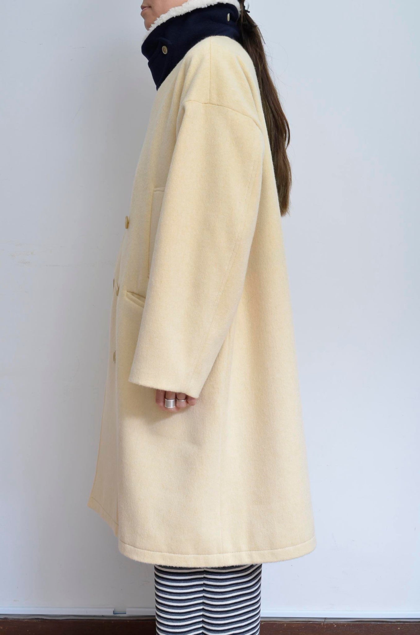 デッドストックのアンゴラ混ウールを贅沢に使用したオーバーシルエットのPコート。